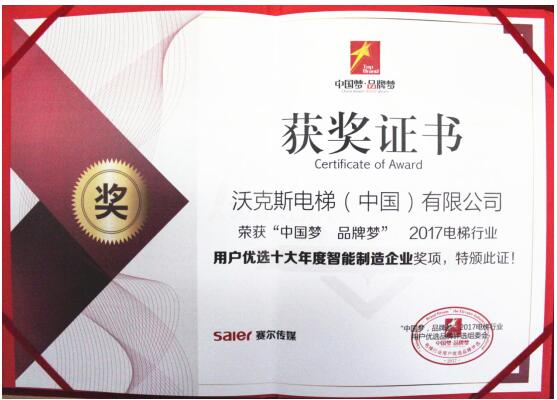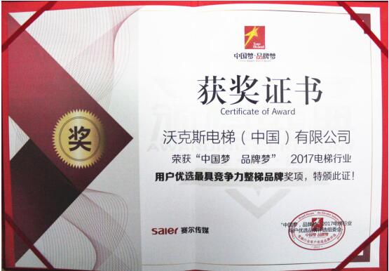 秉承着对生产制造、售后服务等环节的完美追求,沃克斯电梯成为行业内极具竞争力的领先品牌,最终获得“2017电梯行业用户优选最具竞争力整梯品牌”这一备受瞩目的奖项。